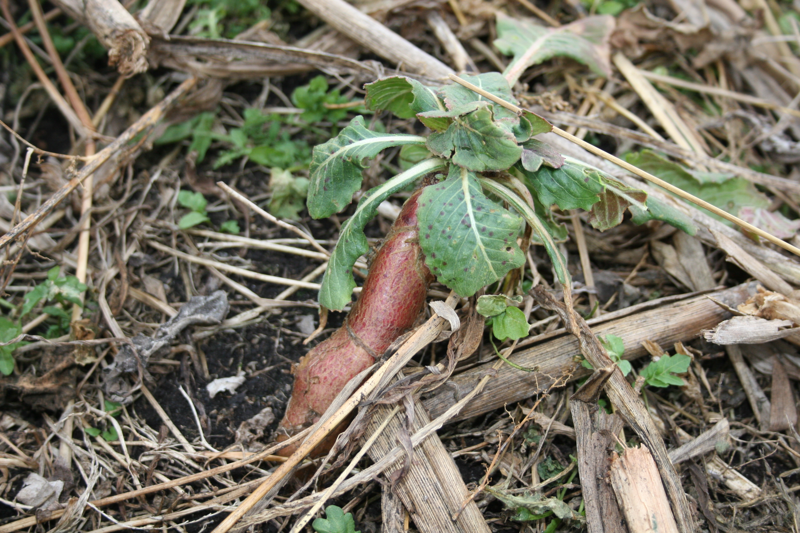 Is this a weed? A runaway vegetable? It grew very close to the edge where weeds have run rampant, so I’m not entirely certain this is an intentional crop. The leaves remind me of cabbage, but the root reminds me of a sweet potato.