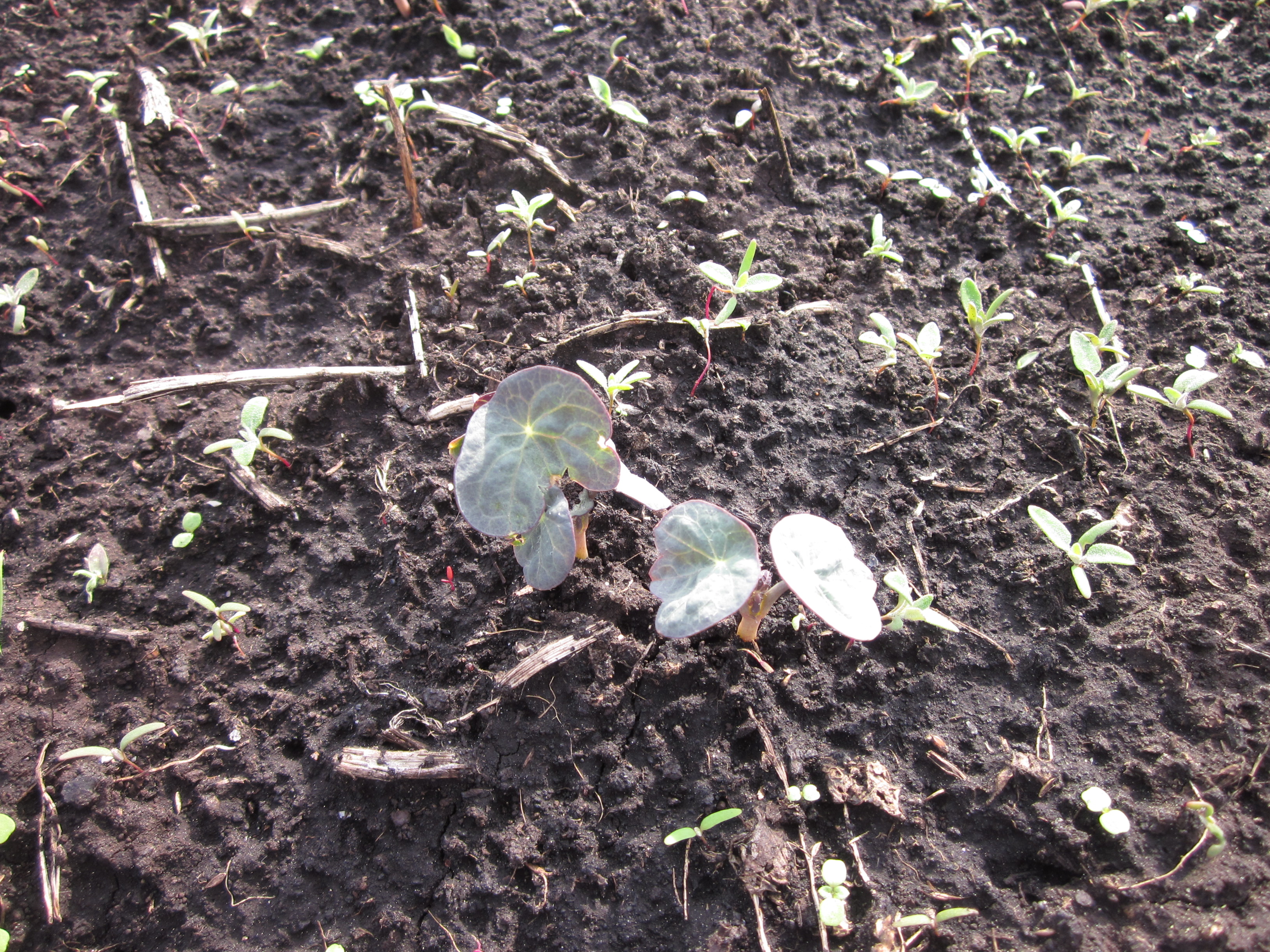 This self-seeded dill field impresses the frugal gardener in me, but a row of carrots happen to run right through the field. Supposedly dill and carrots should not be grown close together. They are in the apiaceae family and are taprooted. The multiple taproots will interfere with carrot growth. Dill tends not to do well as transplants, except when they are young and the taproots have not developed yet. They make for a good companion plant for cucurbits (ie: cucumbers, melons, pumpkins) so I will attempt to relocate these.