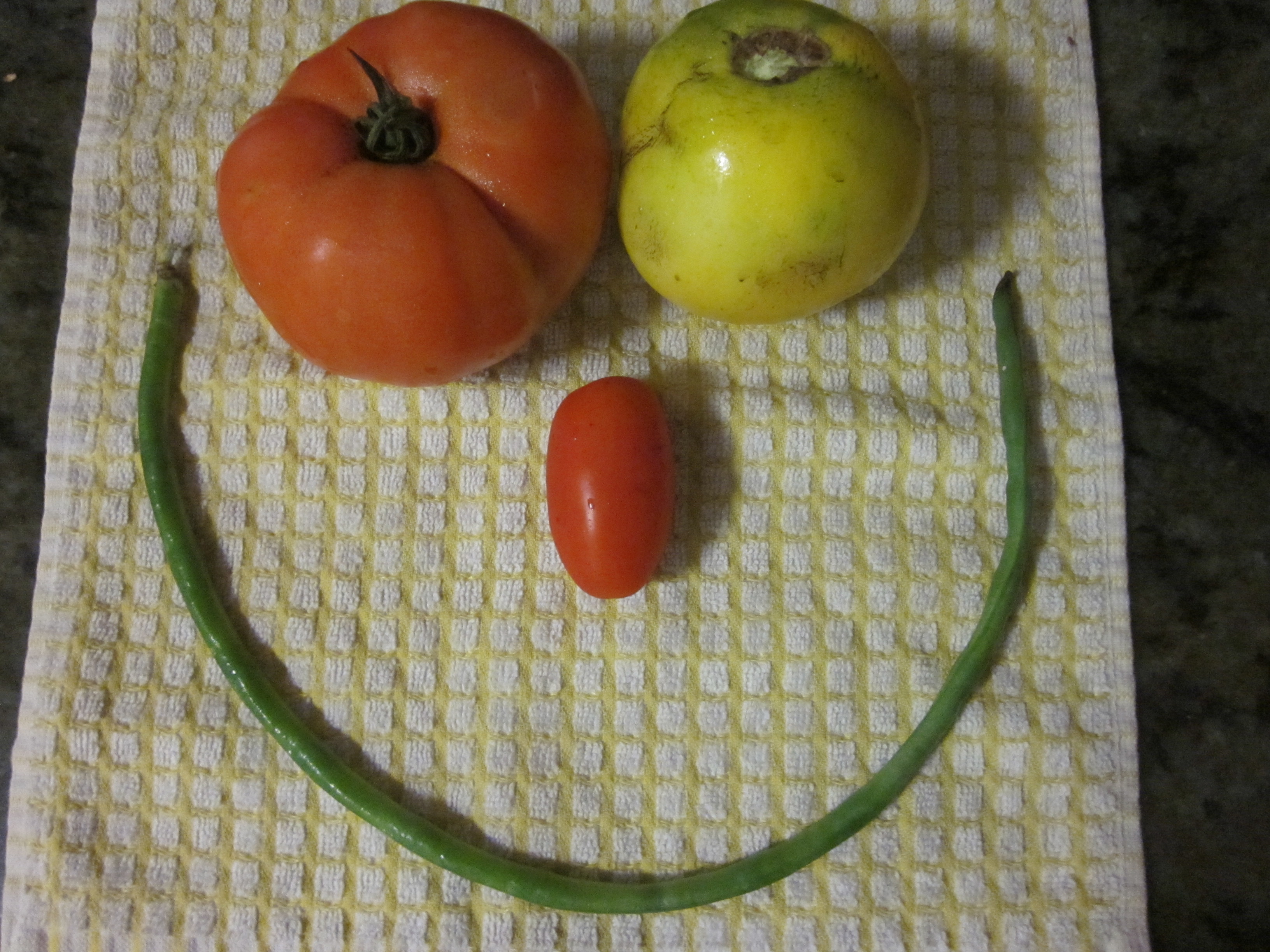 Tomatoes are coming in at an alarming rate. The large variety, brandywine, are mostly green or with streaks of orange. They are so large that we can’t always let it ripen on the vine without putting the rest of the plant in jeopardy. The long beans are also starting to produce heavily.