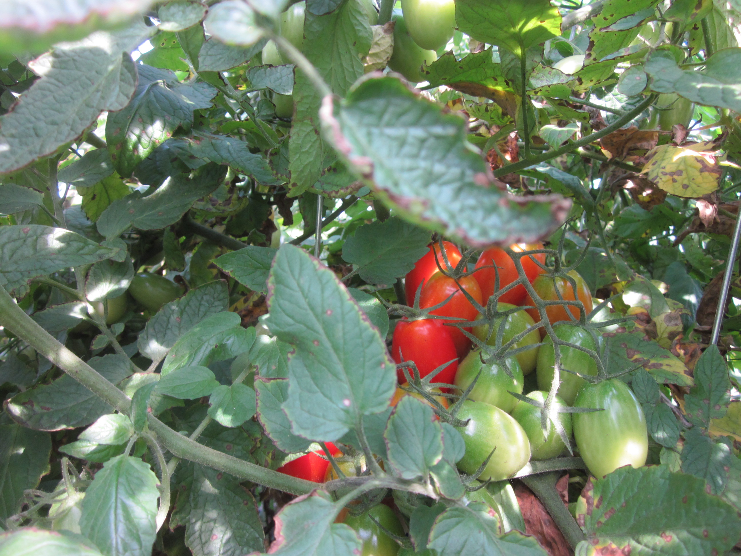 Tomatoes continue to ripen. We are up to about 30 pounds per weekend. Dan covered the ground beneath these tomatoes with black agricultural plastic to suppress weeds and it is a genius tactic. No weeds, nice soft landing, no excess moisture, no rotting fruit, no molding leaves!