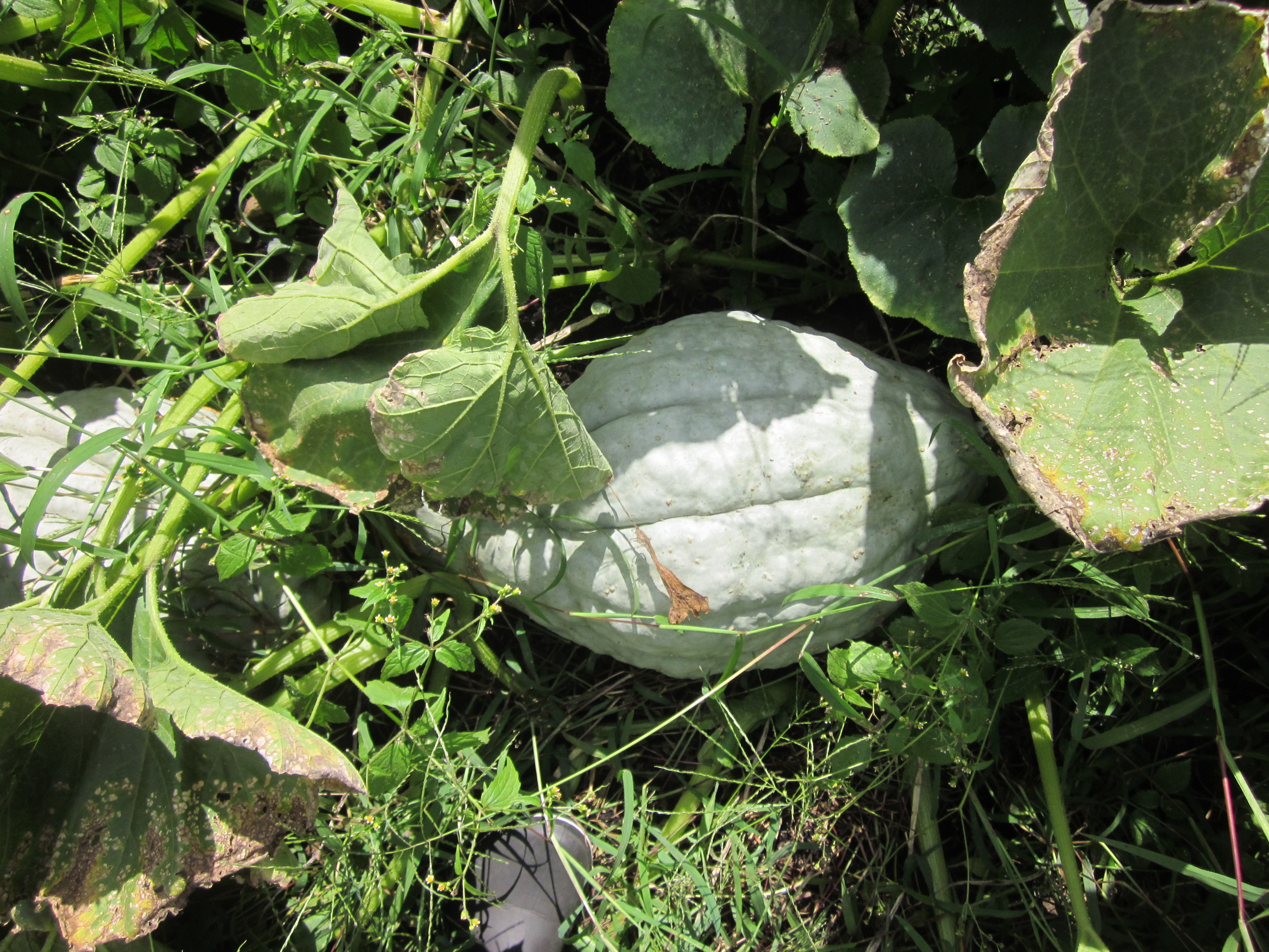 After last week’s pumpkin discovery and subsequent consultation with the almighty but unheeded Excel Master Plan of 2014, we did a winter squash walkthrough. The weeds there were high and mighty (not referring to Colorado, don’t get too excited). But the winter squash are there, rolling under my foot as I trip over extensive vines and leaf.