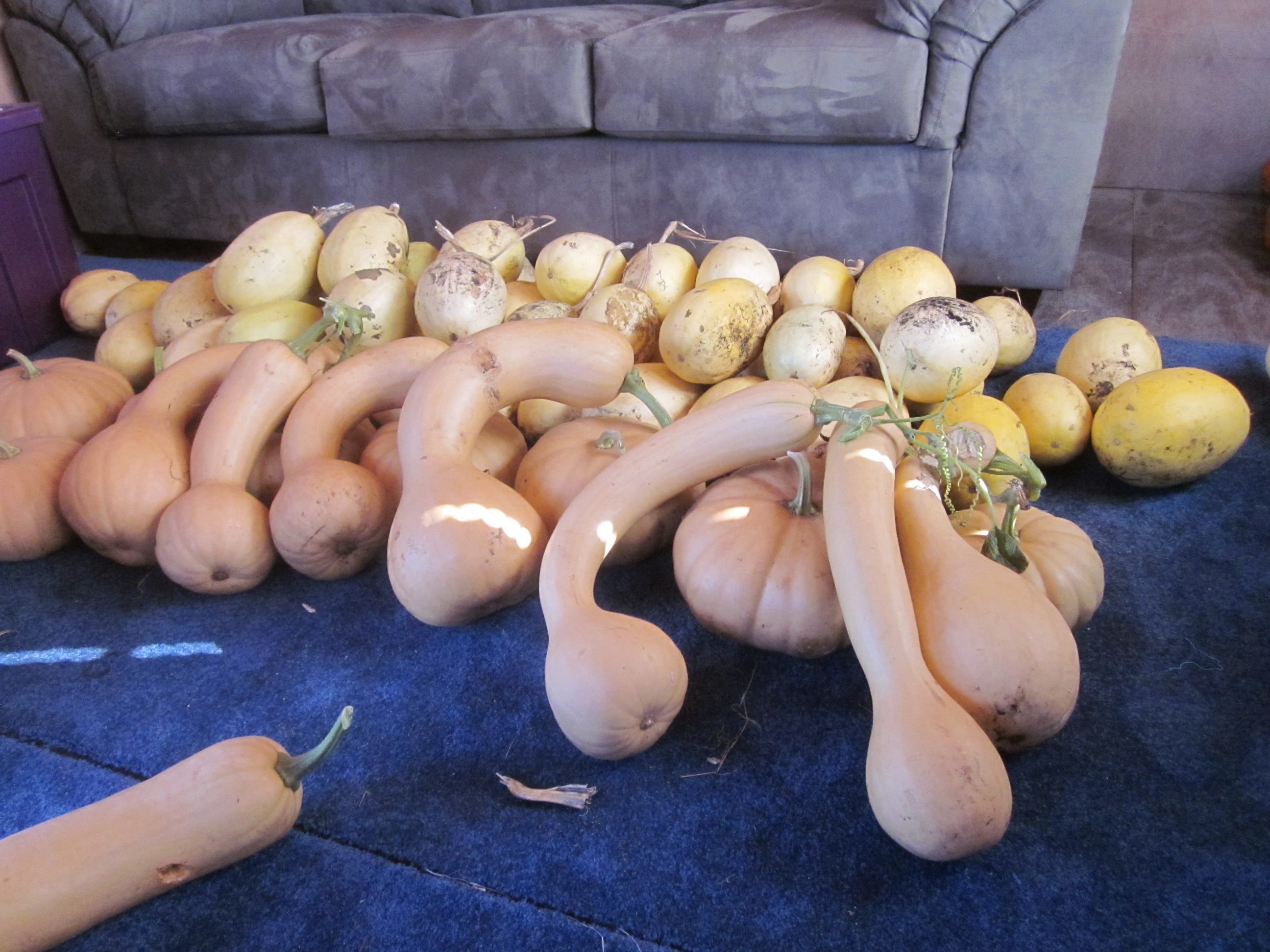 Looking at the droopy squash leaves with a black-green color tells you that the temperature dipped low enough to form ice crystals. We are approaching the “first frost date”, mid-October, for our zone and region. So we set about clearing the squash patches.