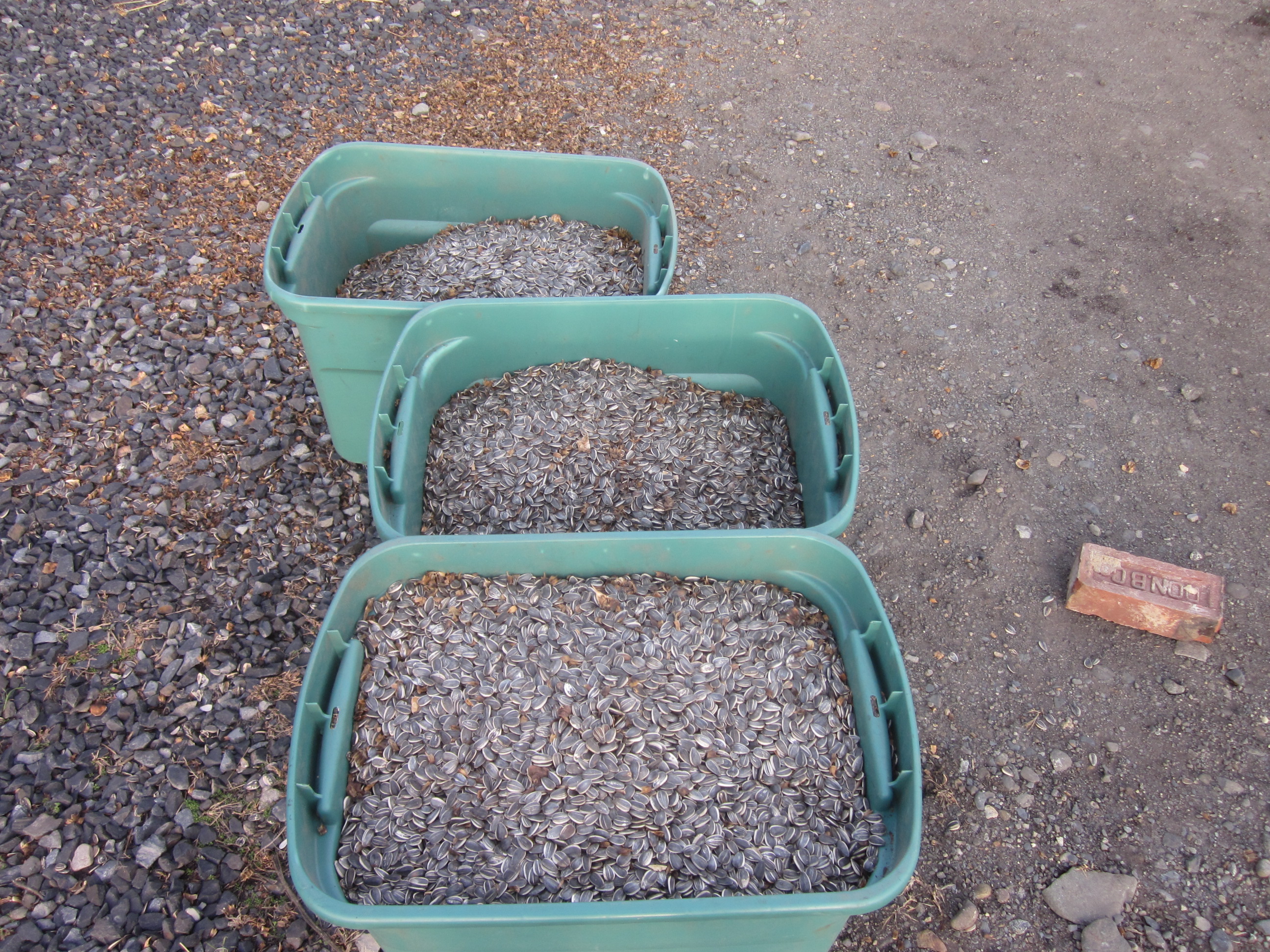 Over the past month, we had ideas of harvesting sunflower seeds. Some were cut down, bundled up, and hung in the barn. Some came home, only to stink a few days later. Some that had been drying inside the barn since late august were pillaged by mice. We realized there are 3 ways to harvest sunflowers 1) pay someone else to do it 2) by specialized equipment or 3) let it dry on the stalk. Because of the sheer number of stalks and the failure of hang-drying, we left it on the stalk until now. This is what resulted from about 30 flowers. There’s more, but we have no more storage and no more desire to battle critters. They can have what’s in the field. Next year, maybe some seeds will sprout by itself. Or, we may feed some african swallows migrating north carrying coconuts.